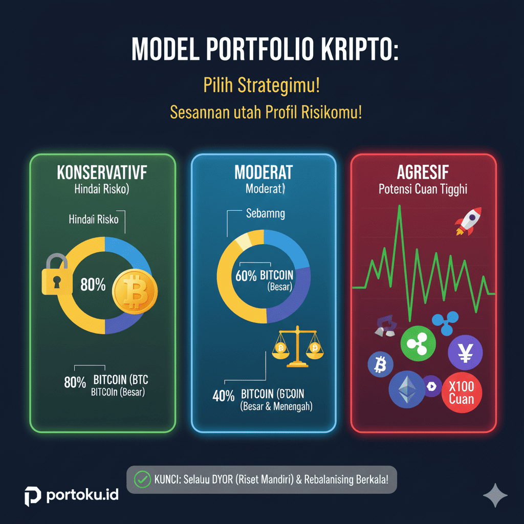 Membangun portofolio kripto adalah seni menyeimbangkan risiko dan imbal hasil. Gunakan Bitcoin sebagai fondasi yang kokoh untuk stabilitas jangka panjang, dan alokasikan sebagian dana Anda ke altcoin berkualitas sebagai akselerator pertumbuhan.